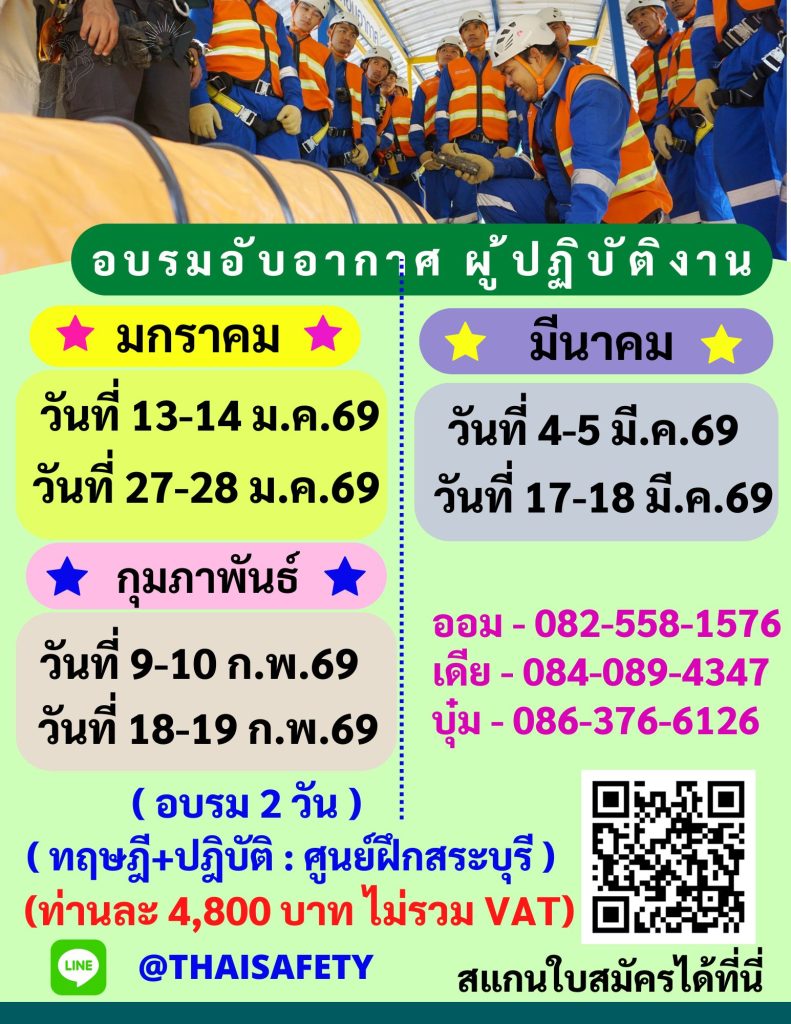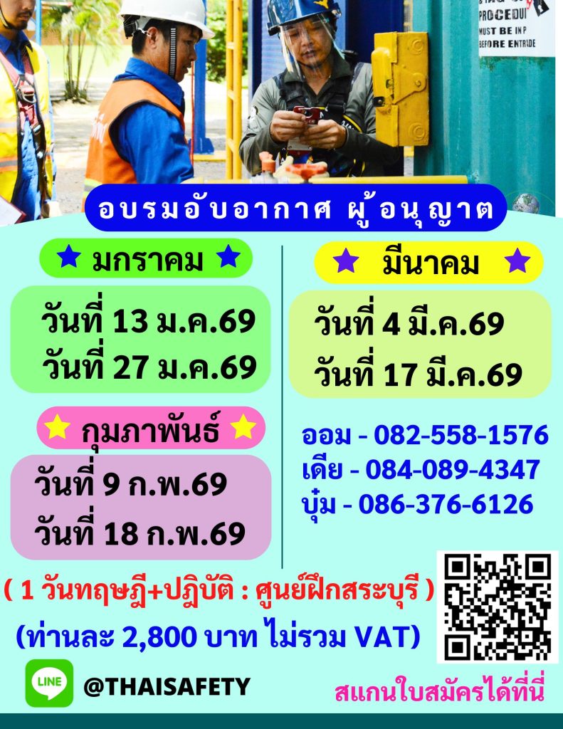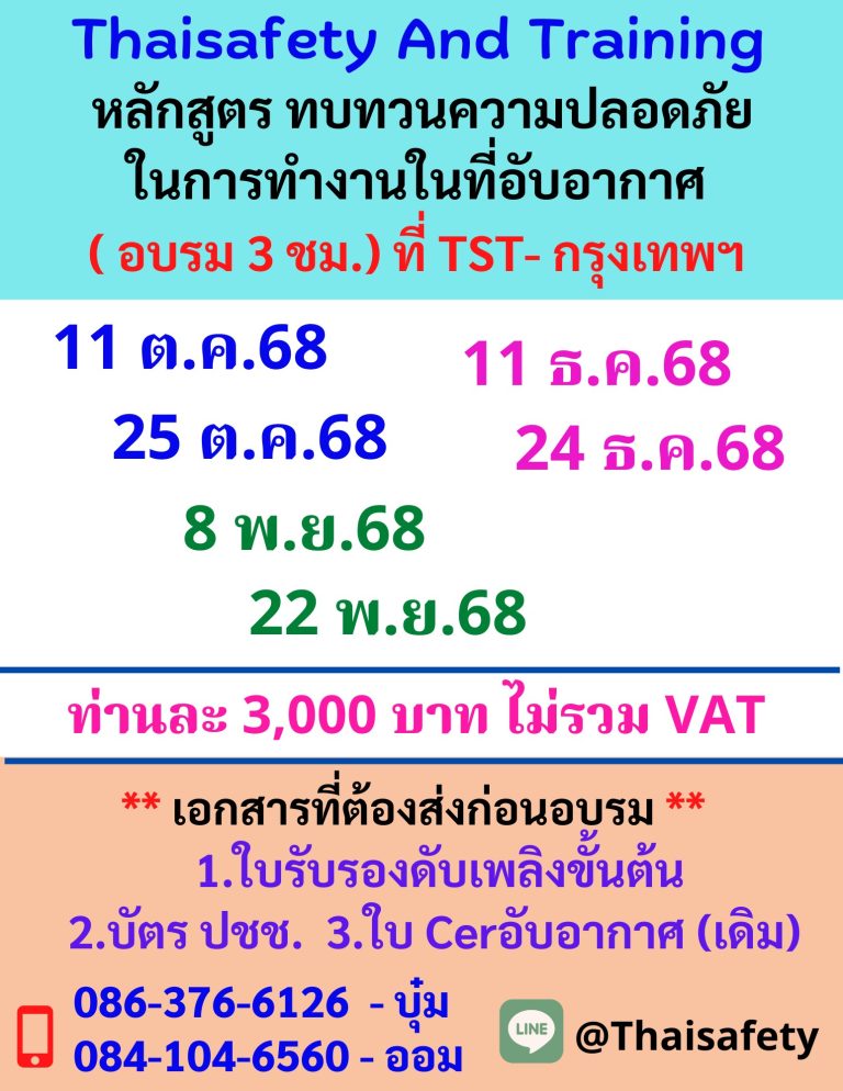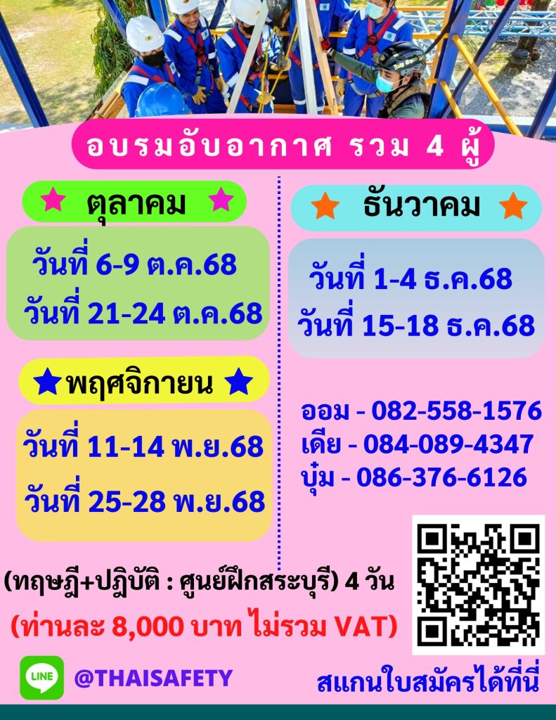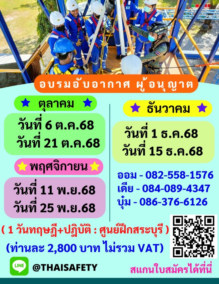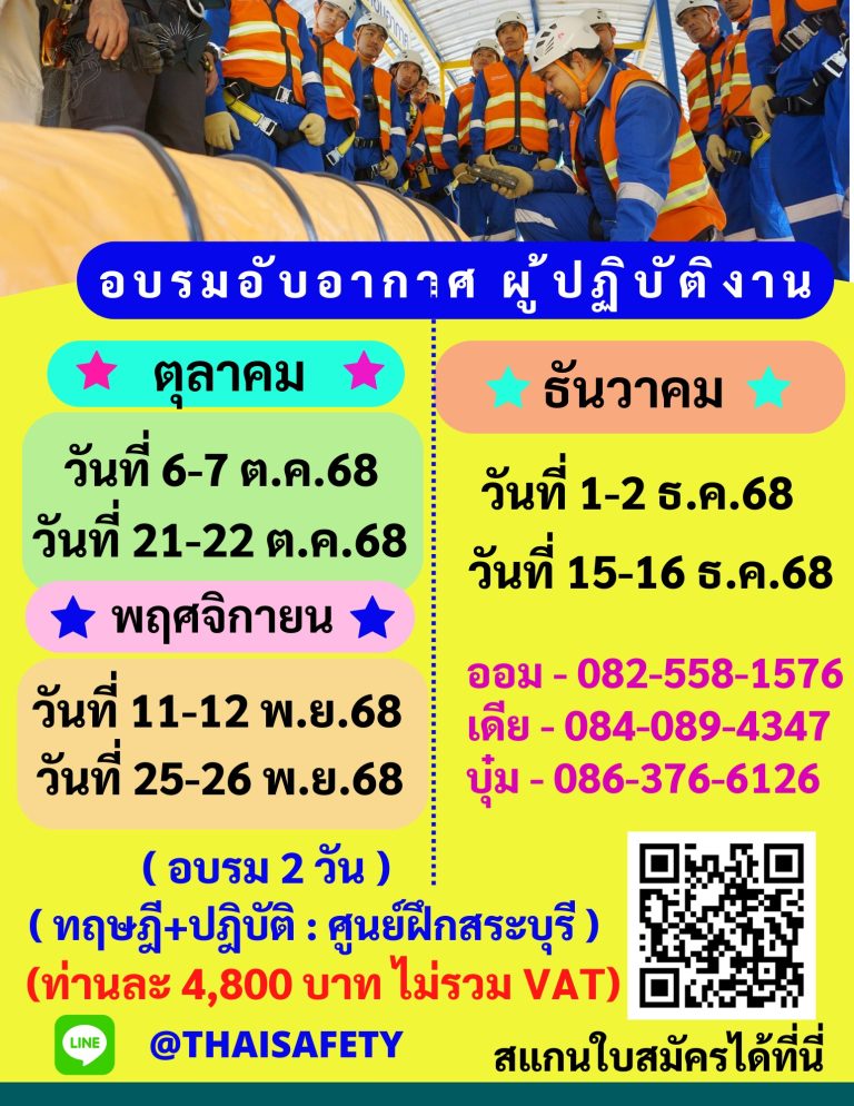 หลักสูตรความปลอดภัยในการทำงานในที่อับอากาศ ผู้อนุญาต ผู้ควบคุม ผู้ช่วยเหลือ และผู้ปฎิบัติงานในที่อับอากาศ